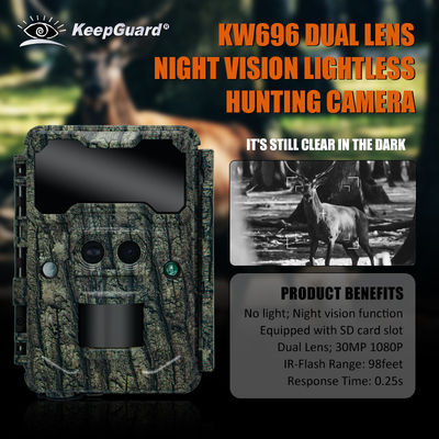 KW696 Außenkamera zur Jagd auf Wildtiere Dual-Lens 30MP Lichtlose Spurkamera 1080p Nachtsicht 512G Waldkamera Infrarot